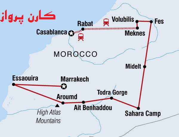 برنامه سفری 15 روزه که از ورود به شهر کازابلانکا آغاز و با خروج از شهر مراکش ، پایان می یابد.
