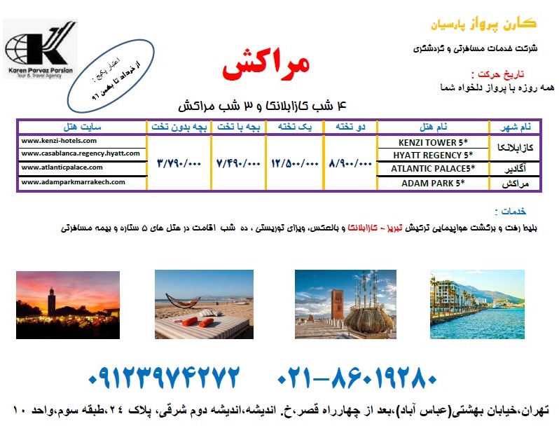تور مراکش از تبریز (کارن پرواز)